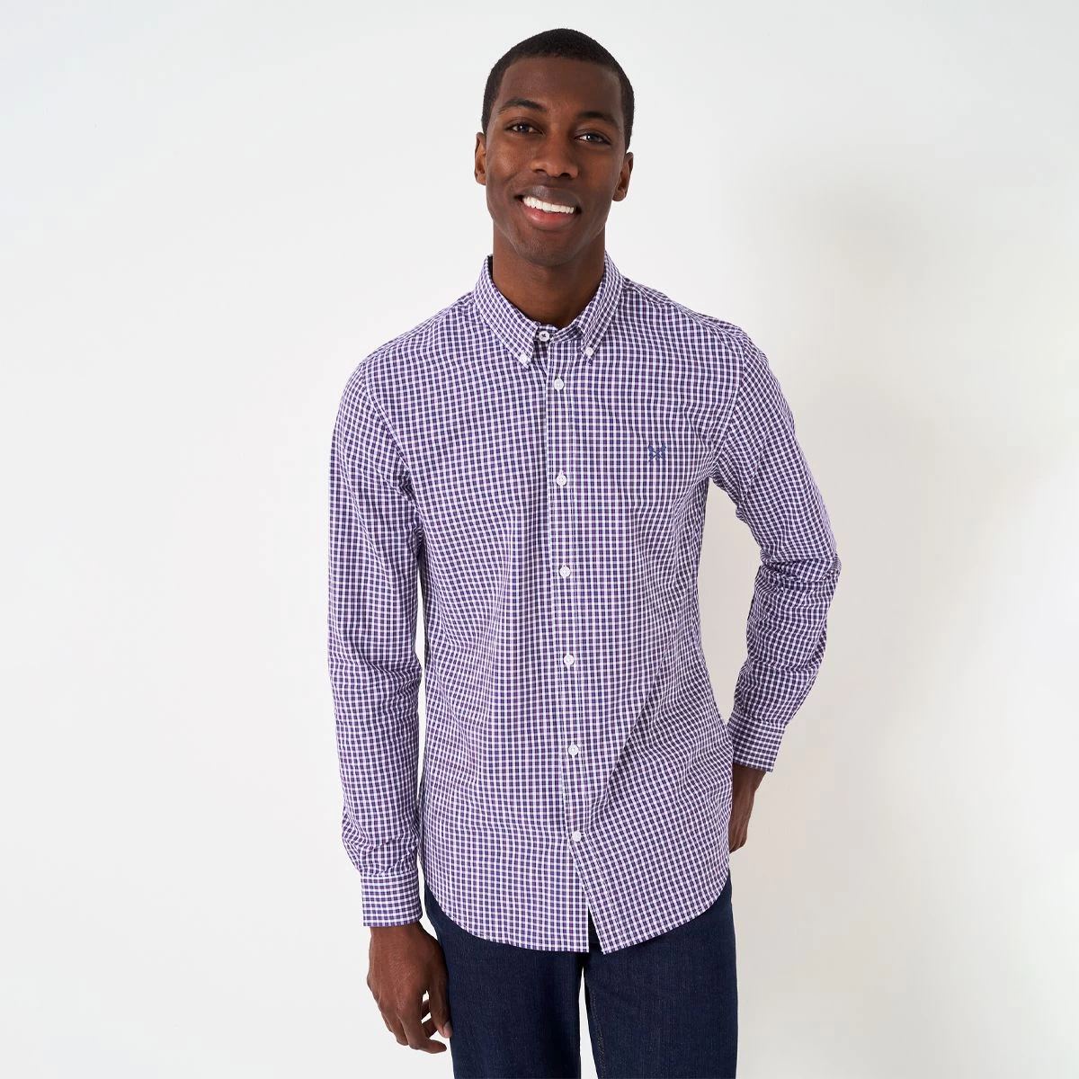 Crew Clothing Men’s Jasper Washed Poplin Check Shirt – White/Navy/Red