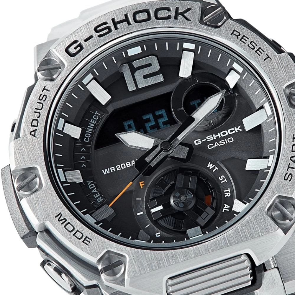 Introducing the GST-B300SD-1AER, the latest addition to the G-STEEL line of G-SHOCK shock-resistant watches. The GST-B300 series is the first G-STEEL watch with a front button, which adopts a new Carbon Core Guard structure that delivers superior shock resistance by leveraging the lightness and outstanding rigidity of carbon fiber.