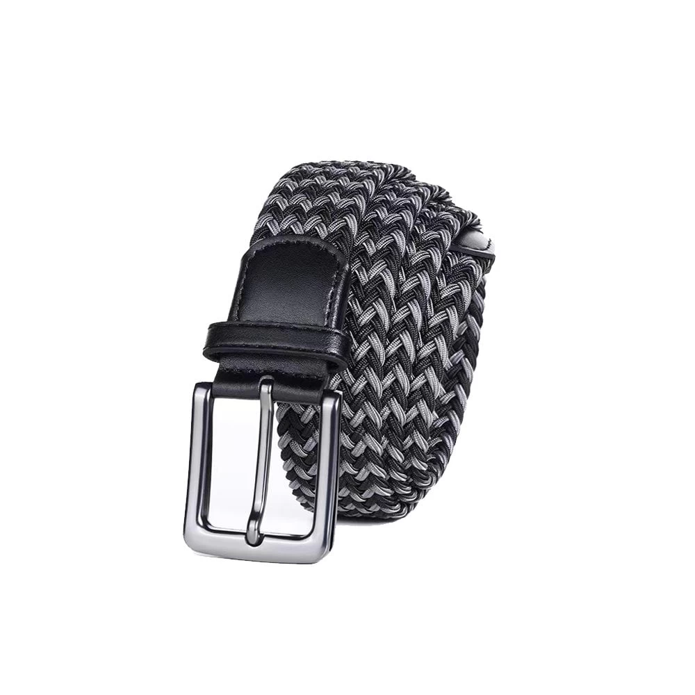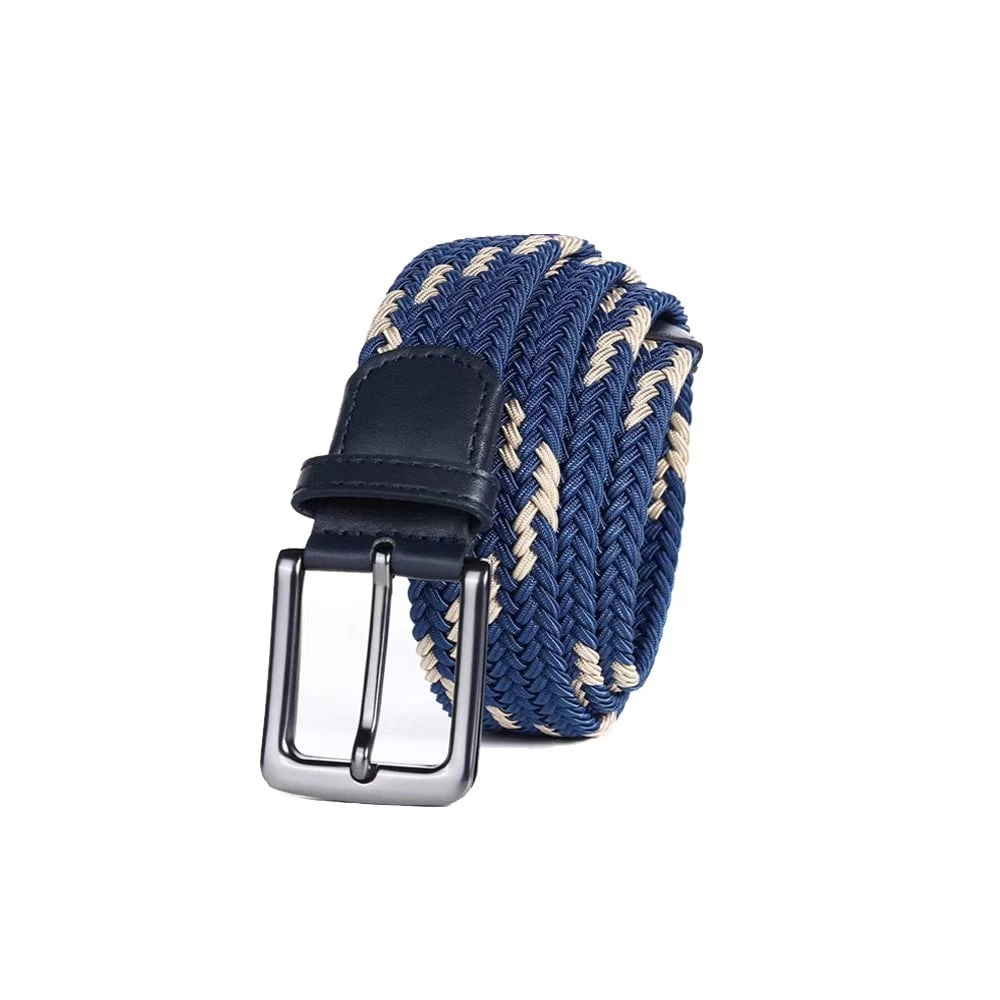 This Stretchy belt has a plaited strap and is constructed from a polypropylene/elastane blend. Featuring a leather tab, loop and tip with a lead-free zinc alloy buckle and a brushed nickel finish.Â